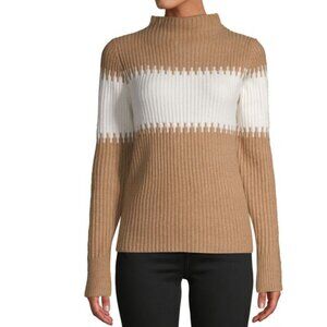 🌟Host Pick!🌟 French Connection Funnel-Neck Camel/White Colorblock Sweater - M