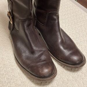 🥂Host Pick🥂Milano Structured Brown Leather Flap Over Snap Detail Zip High Boots