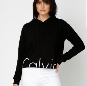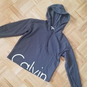 NWOT Calvin Klein Jean's gray crop logo hoodie. Adorable warm fleece hoodie perfect for fall. Color is super cute, a dark gray. Please let me know if you have questions. First photos are only for reference.