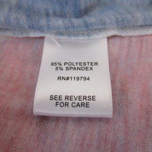 Bought for a July 4th party that I didn't go to. Cute red white and blue with silver studded stars and blue studded stripes and flutter cap sleeves. In excellent unused condition, no flaws. Manufacturer and size tag removed. Polyester.spandex blend material.