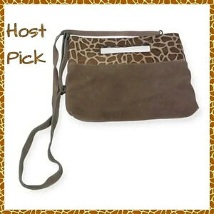🔥Host Pick🔥NWT Anthropologie suede leather tan giraffe print Clutch with strap