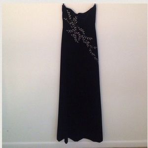 ๐Host Pick!๐ NEW CONDITION~ Patra black velvet strapless evening gown.This ultra flattering black stretch-velvet gown features an intricate silver leaf embroidering that extends from the hip and spreads upwards across the front of the gown.Elastic band holds the dress securely in place at the chest for a form flattering fit. Chest is lined with soft netting. (79%nylon, 21%lyrcra) Breathtaking dress that photographs gorgeously. Perfect for the holidays, Christmas, New Years Eve ball, galas, formal events, pageants, formals, and special occasions!
