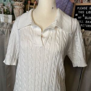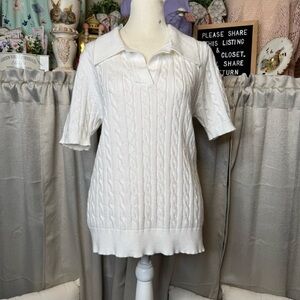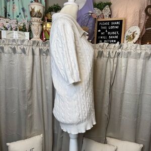 ✨Host Pick!✨White V-Neck Cable Knit Sweater Size Large