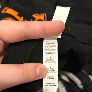 I don’t think daughter wore these much. Maybe some super slight color fading on the black, graphics are in great shape. No holes or stains.