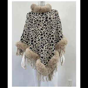 ⭐️Host Pick⭐️Elegant Women's - Leopard Pattern Faux Fur Poncho Cape - Stone