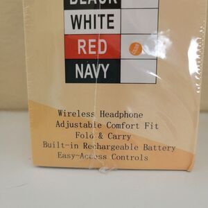 NWOT. New, in box, never opened. Very nice pair of wireless headphones. The color is red. Built in rechargeable battery with easy access controls.
