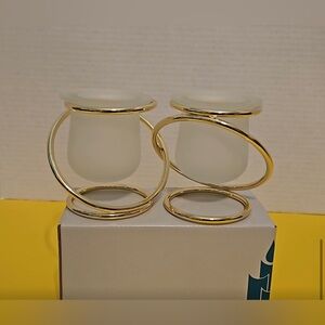 Elegant vintage PartyLite candle holders with gold accents. Perfect for home decor. New in Original Box. Same day shipping M-F. Smoke free home. 2/19