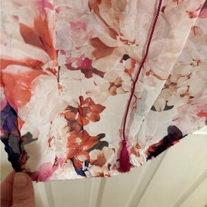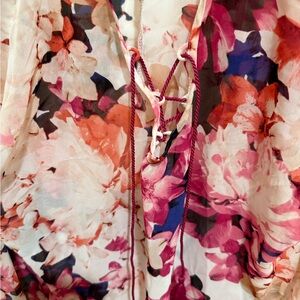 Only worn once, excellent pre owned condition. EUC. Chiffon/rayon fabric.