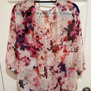 🎉 Host's Pick 🎉Lane Bryant White and Pink Floral Graphic 3/4 Sleeve Blouse
