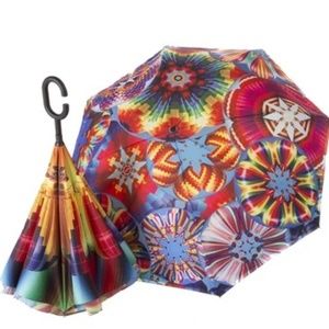 Created from 11 original photos of hot air balloons, reconstructed into colorful mandalas and collaged onto the reverse technology umbrella with jaw dropping 3D effects and 3D glasses are included. Art to wear and make a statement with the coordinating leggings or kimono.
