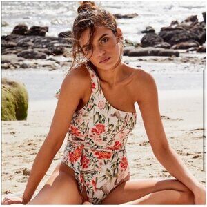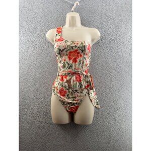 Hot As Hell One-Shoulder Floral Print Swimsuit With Tie Waist Swimwear Size M