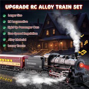 Hot Bee Train Set for Boys, Alloy Remote Control Train Sets with Steam