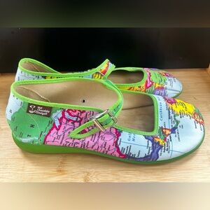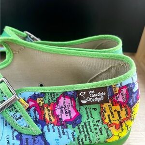 Hot Chocolate Design “World Map / Atlas” Mary Jane Flats • EU 38 / US ~7.5–8