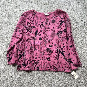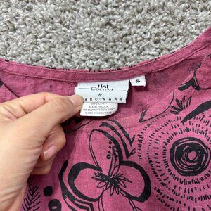 Hot Cotton By Marc Ware Womens S Pink & Black Graphic Print 100% Linen Top
