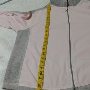 Stay stylish and comfortable with this super soft fleece jacket in soft colors of pink and gray. It's perfect for any casual outing or athletic event.