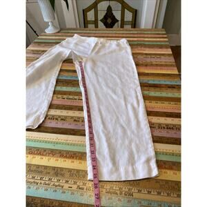Hot Cotton M 100% Linen White Wide Leg Elastic Waist Pull On Pants Lagenlook