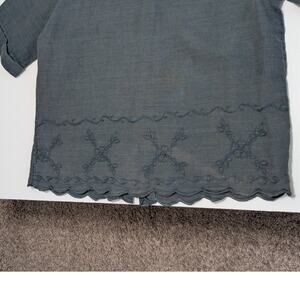 Hot Cotton Marc Ware Linen Button Down Shirt Embroidered Short Sleeve Gray Blue