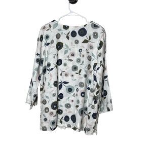 Hot Cotton Marc Ware XL 100% Linen Button Shirt Top White Floral Lagenlook