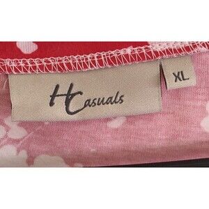 Hot Cotton Size Extra Large Top Red Short Sleeve White Plant Print Lagenlook