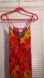 Vibrant floral dress with red, yellow, and green hues. Perfect for a bold look. Long halter dress