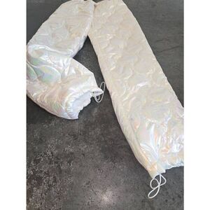 IVORY PEARL METALLIC QUILTED JOGGERS ELASTIC WAIST AND ANKLES WIRH BUNGEE CORD DETAILS