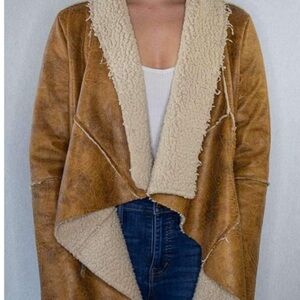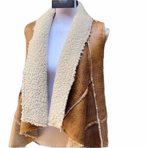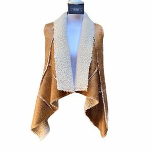 Hot & Delicious Vegan leather Faux Shearling Waterfall Vest Size Small