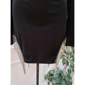 Hot & Delicious Womens Black Fringe Detail Cutout Polyester Bodycon Dress Size L.