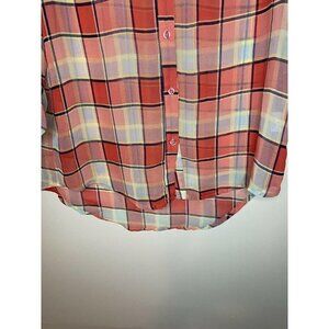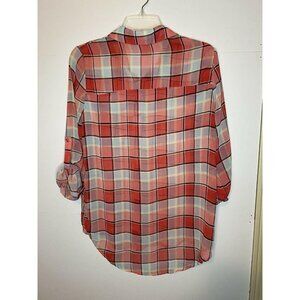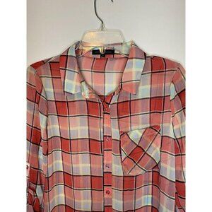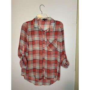 Hot & Delicious Women's Sheer Button-Up Plaid Shirt Sz Small Pink/Blue EUC.