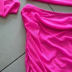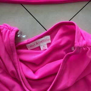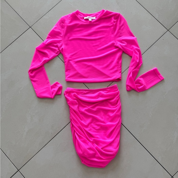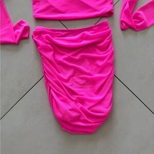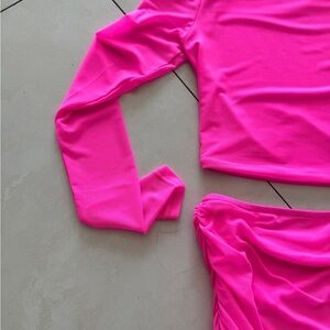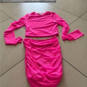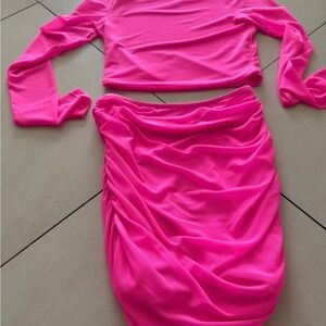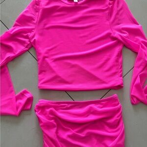 Hot & Delicious hot pink mesh long sleeve skirt set size small worn once stretchy