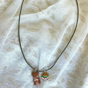 This is a Hot Fashion Women/Girls Teddy Bear & Burger Charms Pendant & Waxed Cord Necklace.