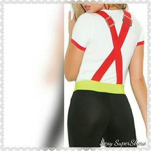 Get your sexy shero on in this figure-hugging 2 pc. costume! Includes pants with attached suspenders and a short sleeve top. So sexy!
