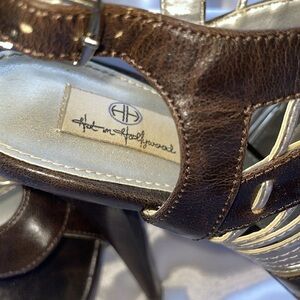 Hot In Hollywood Sexy Silver & Brown Lace Up Slingback Stiletto Heels Size 9