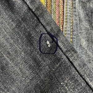 Small little flaw on the right side sleeve. Please note last picture I circled it it's in the inner side of the sleeve. Can't see it when wearing jacket.