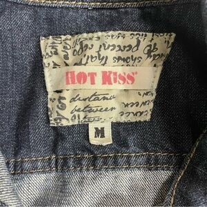 Hot Kiss Jean Jacket Womens Juniors Size M Denim Multi Color Patches