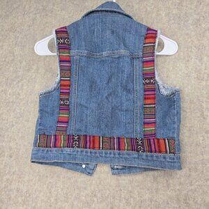 Hot Kiss Denim Vest With Aztec Embroidered Yoke Light Wash Button-Front Size S