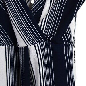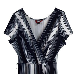 Hot Kiss Jumpsuit 2X Womens Navy Blue White One Piece Flare Leg V Neck Stretch