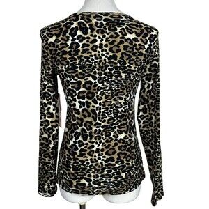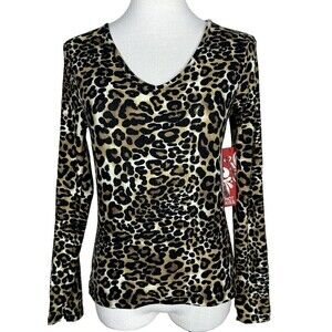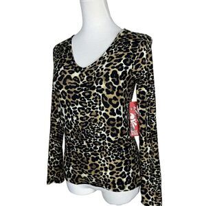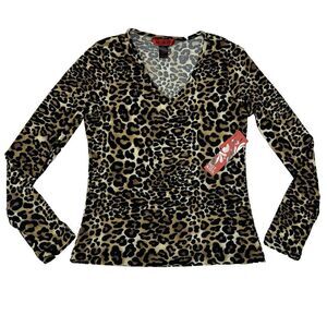 Hot Kiss Leopard Animal Stretch Crop Long Sleeve V Neck Top Large NWT