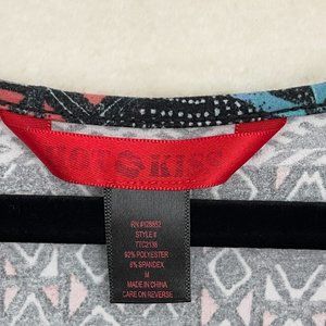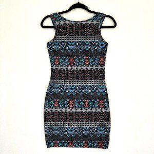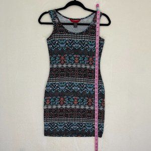 This listing is for one Hot Kiss sleeveless dress. This dress is a women's size medium. It has blue, black, white and pink geometric patterns all over.