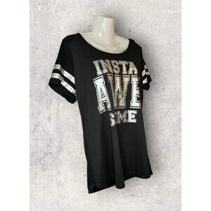 Hot Kiss Women's 1X Insta Awesome Graphic Varsity Jersey Ringer Tee Streetwear