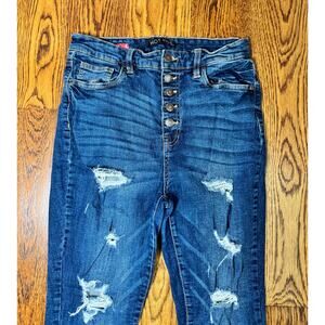 Hot Kiss Women’s Highest Rise Skinny Ankle Jeans Size 11 Distressed Button Fly