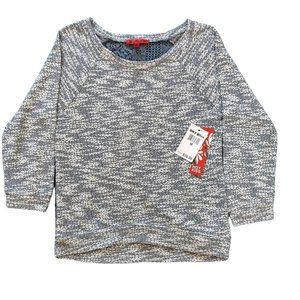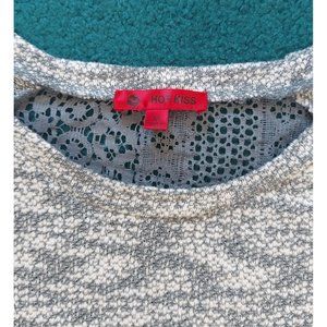 Hot Kiss Womens Long Sleeve Top Gray White Medium Knit Lace Back Sweater Size M