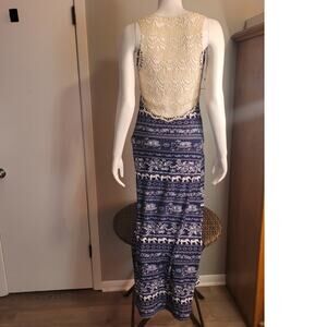 Hot Kiss XS Sleveless Maxi Dress Blue Elephant Print Crochet Open Back Boho