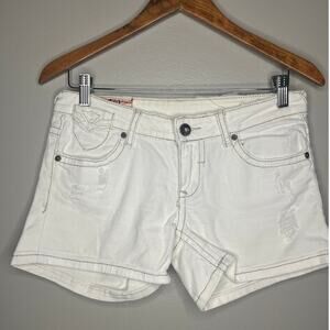 Hot Kiss Y2K White & Cream Thread Low Rise Distressed Denim Shorts 5