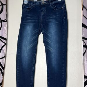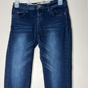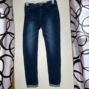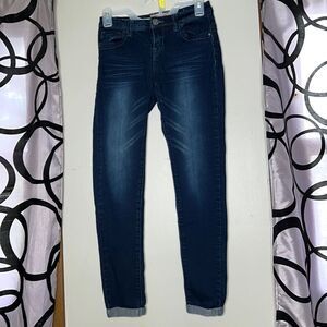 Measures approximately 26 inches at the waist with a rise of 7 1/2 inches and an inseam of 27 inches