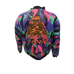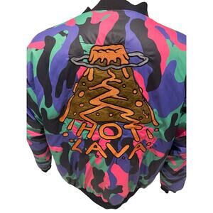 Hot Lava Camo Bomber Jacket Volcano Patch Embroidered “Hot Lava” Streetwear XL