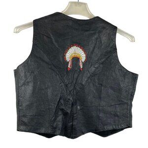 Hot Leathers Vest XL Black Snap Front Indian Headdress Applique Sleeveless