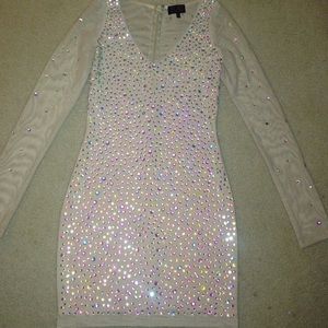 Size small - nude jewel embellished dress! This is the prettiest dress to me! I wore this only once