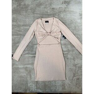 Hot Miami style NUDE V NECK KNOTTED CUT OUT LONG SLEEVE DRESS Size L