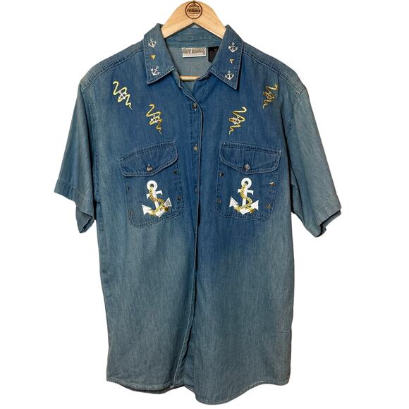 Hot Names VTG Grandmacore Anchor Rope Nautical Denim Shirt Size Unisex Medium
