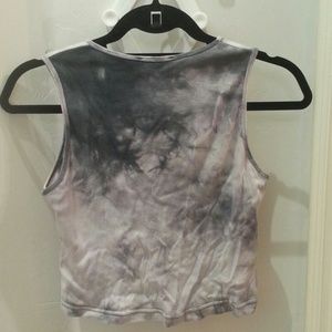 Really cute crop top purchased in Paris, France. Goes great with skinny jeans or a rock&roll kind of outfit. Listed medium but is a tight fit on my large shoulders and 36C bust